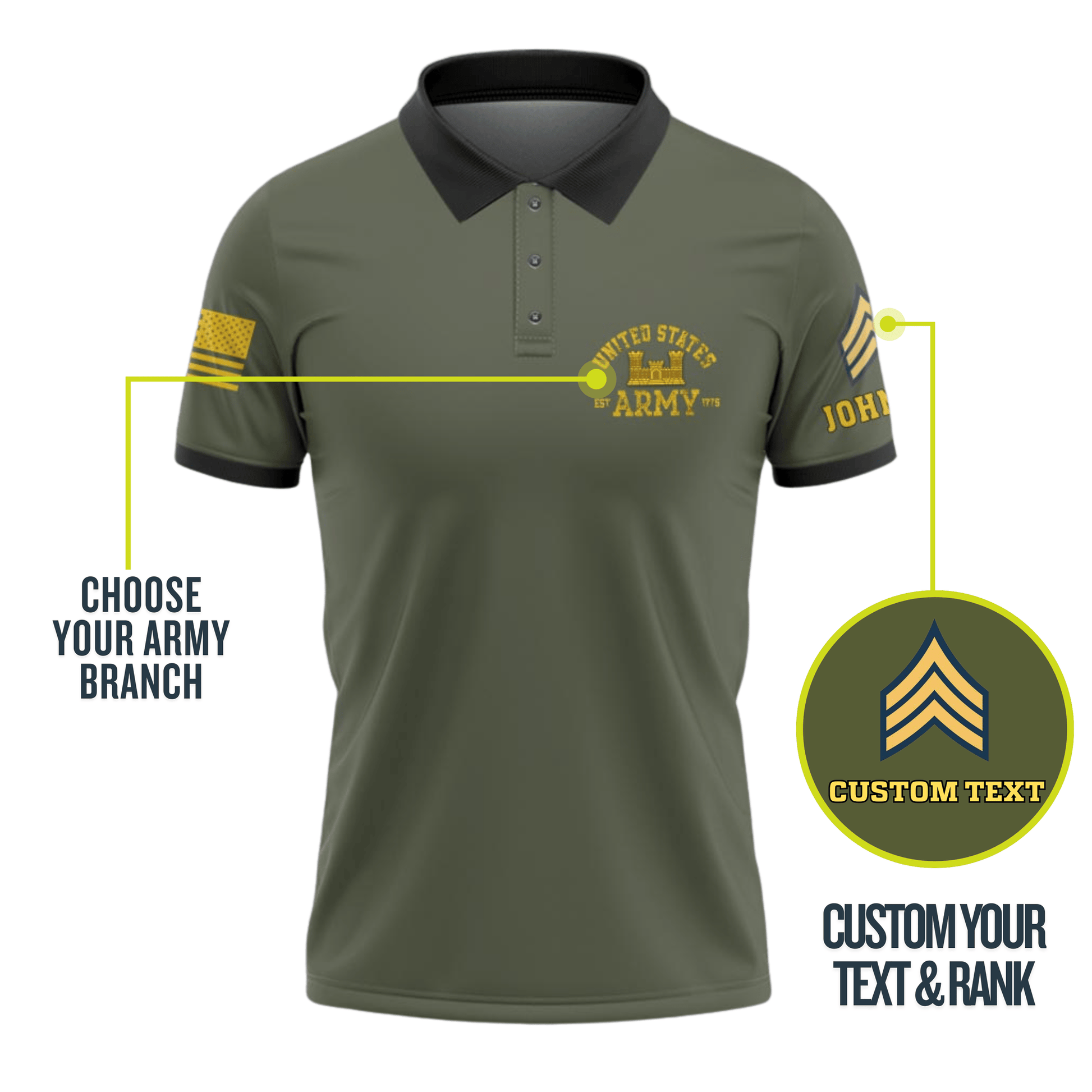 US Army Customized United States Army Branches Polo Shirt #000B157